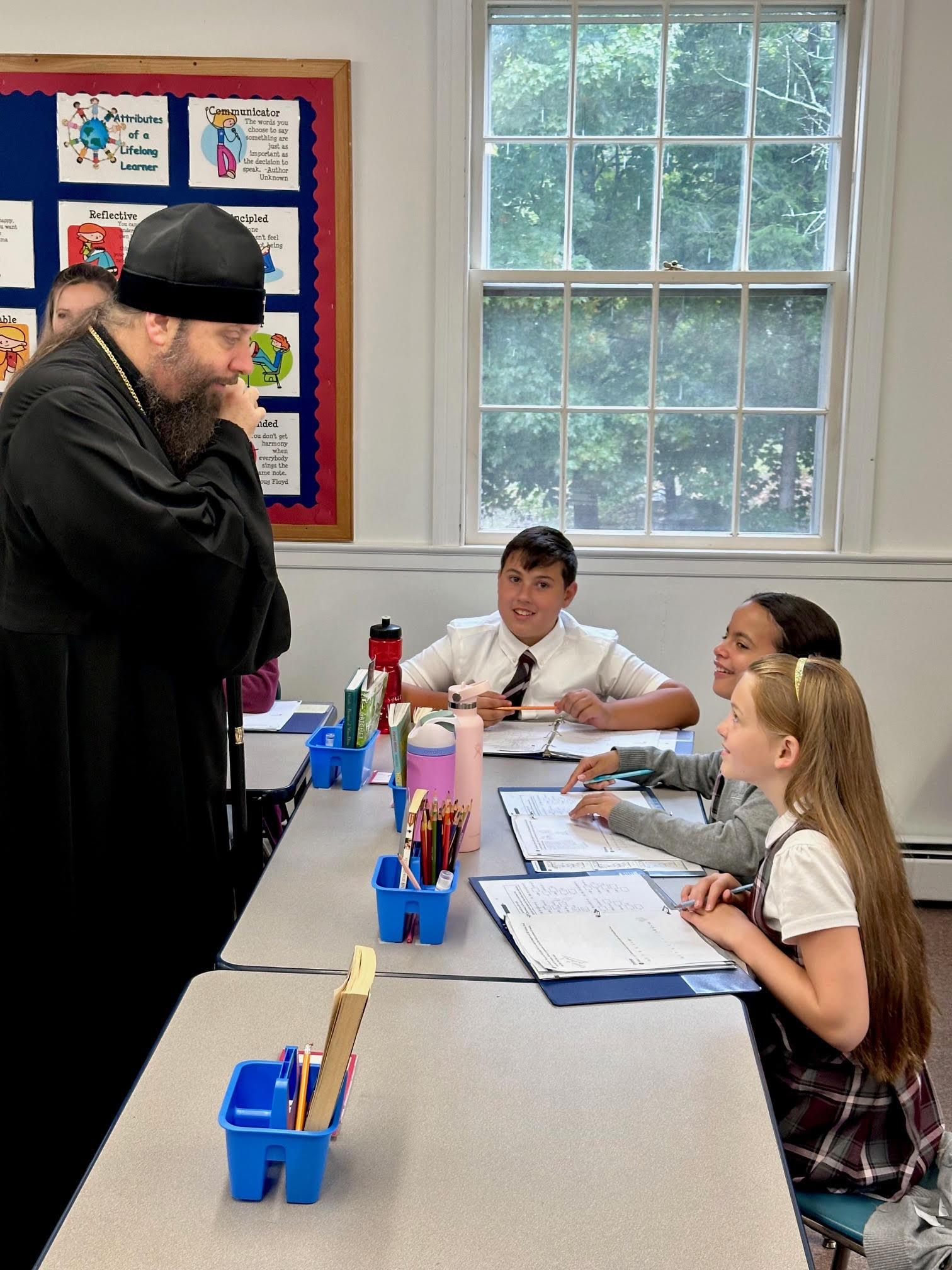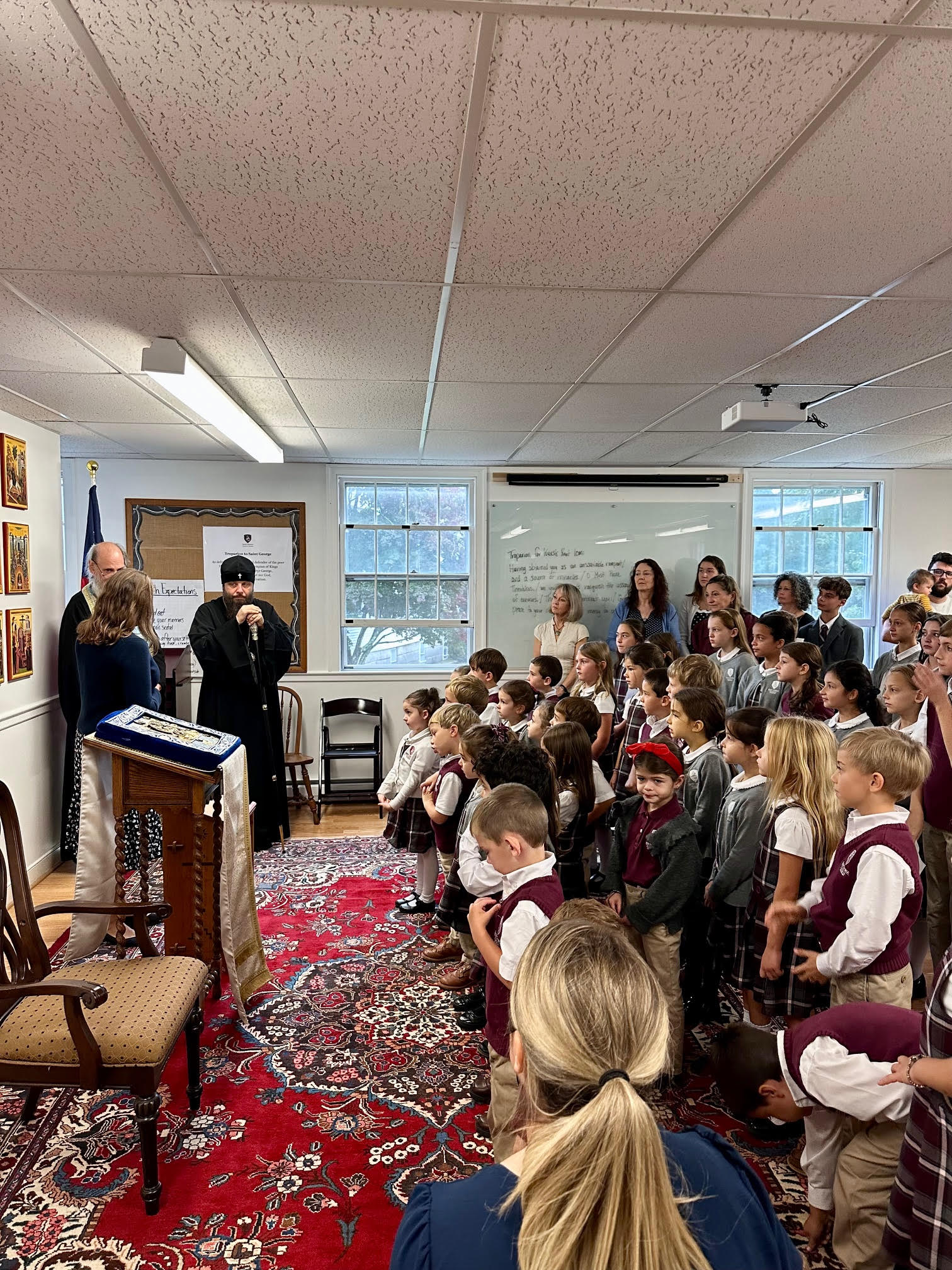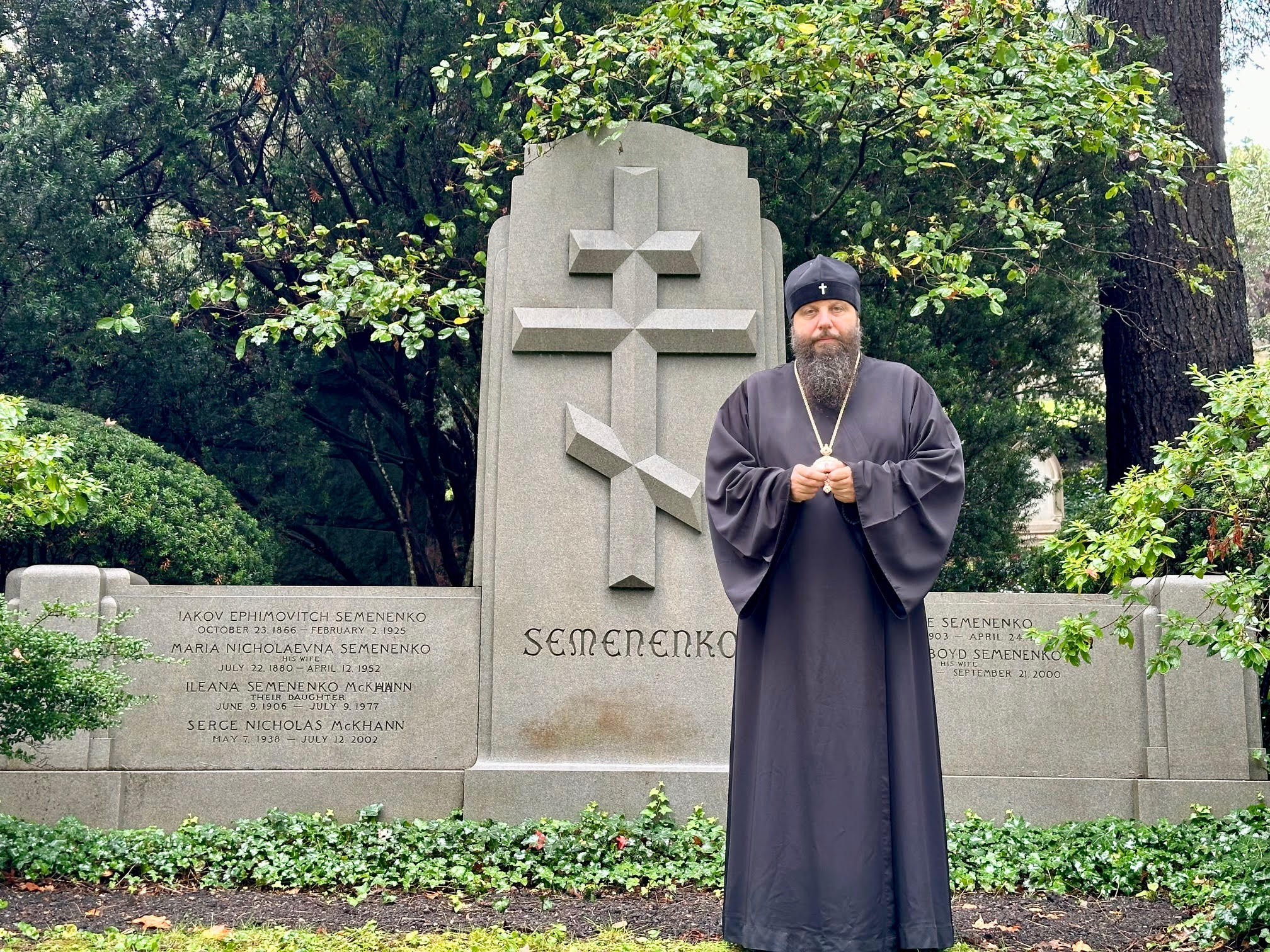On Thursday, September 25, on the Afterfeast of the Nativity of the Most Holy Theotokos, Metropolitan Nicholas, accompanying the Miracle-working Kursk-Root Icon of the Mother of God, visited St George Classical Academy in Ipswich, MA. There His Eminence met with the director, Juliana Schneider, students and pupils, toured all the facilities, and learned about the life of the school. On the same day, His Eminence visited Mt Auburn Cemetery in Cambridge, MA, where he served a requiem at the grave of the late benefactor of the Synod of Bishops and the Athonite St Elias Skete, Sergei Semenenko, who in the late 1950s generously donated the Synodal Residence in New York City to the Russian Orthodox Church Abroad.